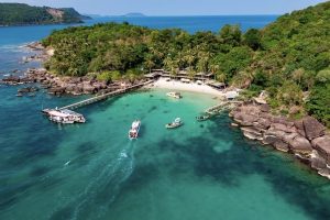 Phu Quoc Island lies in the Gulf of Thailand, in Kien Giang Province, approximately 45 km from Ha Tien and just 15 km south of Cambodia’s coastline. As the largest island in Vietnam, Phu Quoc is part of an archipelago comprising 22 islands and islets, covering an area of around 585 square kilometres and stretching nearly 50 km in length.